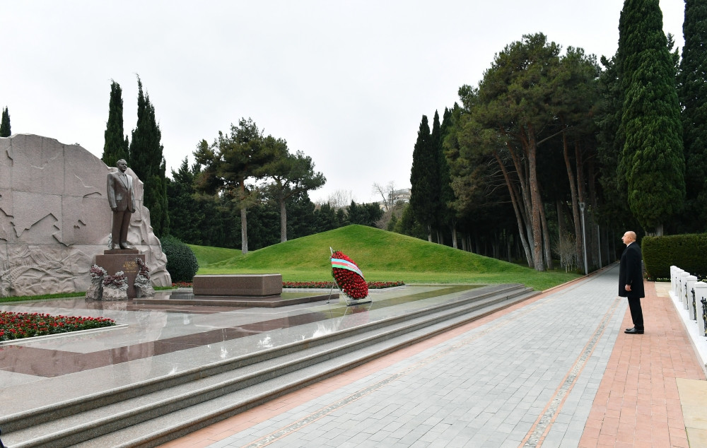 Prezident İlham Əliyev Ulu Öndərin məzarı önünə əklil qoydu.