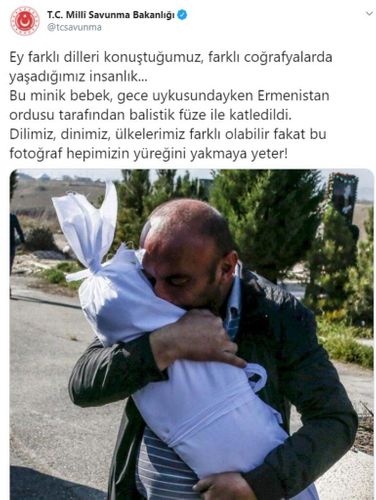 Türkiyənin Milli Müdafiə Nazirliyi Ermənistanın Azərbaycanın Gəncə şəhərini ballistik raketlərlə vurması zamanı öldürülən körpələrin fotolarına reaksiya verib.