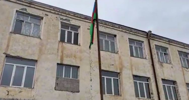 Azərbaycan Ordusunun bölmələri Ağdam rayonunun Gülablı kəndində yerləşən keçmiş orta məktəbdə üçrəngli dövlət bayrağımızı yüksəldiblər.