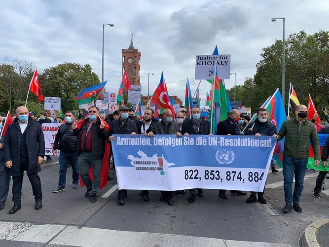 Almaniya Azərbaycanlıları Alyansının təşkilatçılığı ilə Berlin şəhərində Ermənistan silahlı qüvvələrinin Gəncəyə növbəti raket zərbələri endirməsi nəticəsində mülki şəxslərin, azyaşlı uşaqların həlak olmasına, mülki obyektlərə ciddi ziyan dəyməsinə etiraz olaraq aksiya təşkil edilib.
