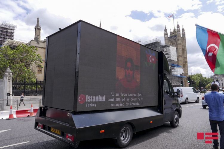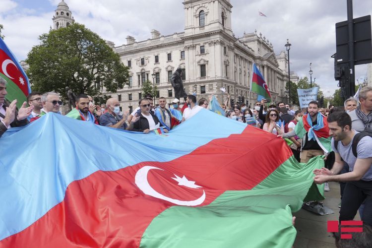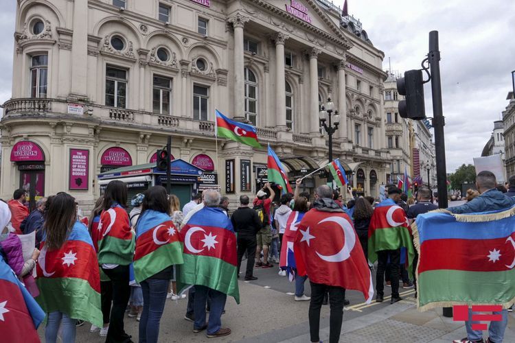 Böyük Britaniyada yaşayan azərbaycanlılar erməni təcavüzünə qarşı Londonda etiraz aksiyası keçirirlər.
