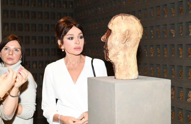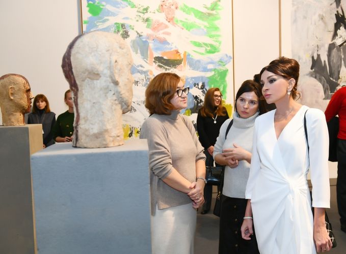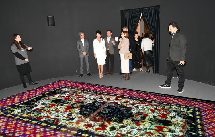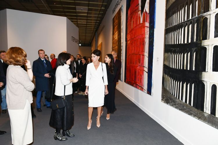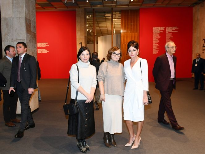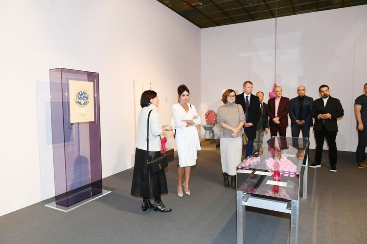 Birinci vitse-prezident Mehriban Əliyeva ekspozisiyada Azərbaycan rəssamları Orxan Məmmədovun “Estetikanın saxlanması ideyası” və Leyla Əliyevanın “Əbədiyyət” multimedia installyasiyaları ilə tanış olub.
