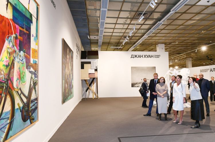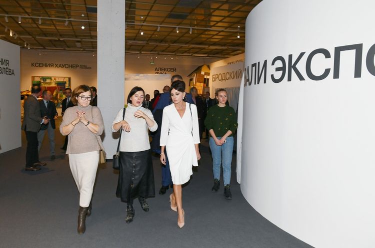 Birinci vitse-prezident Mehriban Əliyevanı Dövlət Tretyakov Qalereyasının direktoru Zelfira Trequlova və Moskva Beynəlxalq Müasir İncəsənət Biennalesinin kuratoru Yuliya Muzıkantskaya qarşılayıblar.