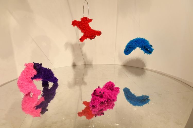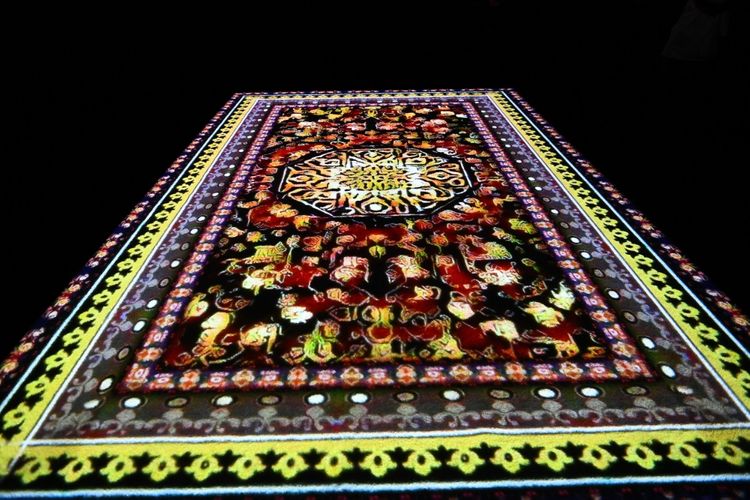 Orxan Məmmədovun təqdim etdiyi installyasiyada müxtəlif dövrlərə aid 50-dən çox Azərbaycan xalçasının naxışları toplanıb. Rəssamın süni intellektdən istifadə edərək hazırladığı art-obyektdə naxışlar bir-birini əvəzləyir.