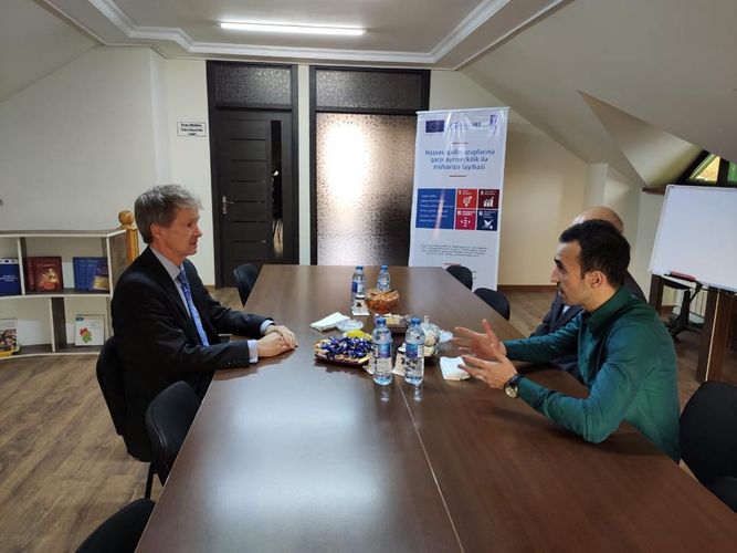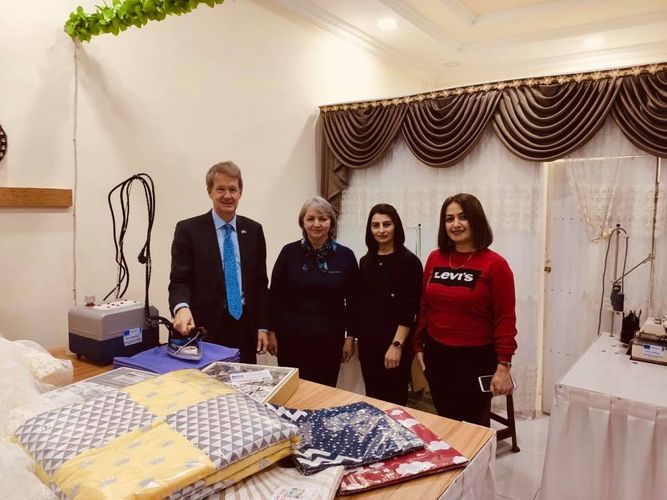 Səfir UNESCO-nun Ümumdünya İrs siyahısına daxil olan Şəki Xan Sarayına baş çəkib, daha sonra Şəki Rayon İcra Hakimiyyətinin başçısı Elxan Usubovla görüşüb və qadın sahibkarlar tərəfindən idarə olunan bir sıra yerli kiçik orta müəssisələrlə tanış olub. Onlardan dərzi və gözəllik salonu “Uluçay” İctimai Birliyi tərəfindən BMT-nin İnkişaf Proqramı və Avropa İttifaqının dəstəyi ilə qurulub.