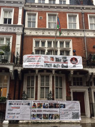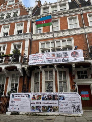 Britaniyadakı Azərbaycan səfirliyinin qarşısında Azərbaycana qarşı erməni təcavüzünü əks edən bannerlər nümayiş olunub.