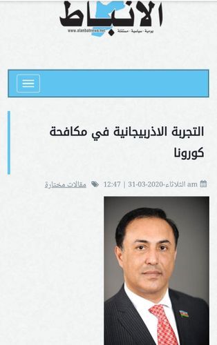 APA-nın məlumatına görə, məqalədə Azərbaycan Respublikasının Prezidenti İlham Əliyevin rəhbərliyi altında Azərbaycan dövlətinin bütün dünyanı cənginə almış koronovirus pandemiyasına qarşı atdığı preventiv, profilaktik, ardıcıl və sistemli addımları təqdim və təhlil olunur. Burada qeyd olunur ki, ilk tədbirlər olaraq bütün quru sərhədlərimiz dərhal bağlandı, eyni zamanda, xaricdə qalan Azərbaycan vətəndaşlarının təxliyə edilməsi üçün əməli addımlar atıldı. Bu günə qədər on mindən artıq Azərbaycan vətəndaşı vətənə qaytarılmışdır. Aviareyslərin sayı kəskin aşağı düşdü və demək olar ki, indi çox aşağı səviyyədə aviareyslər icra edilir və bu da önləyici tədbirlərin bir hissəsidir.