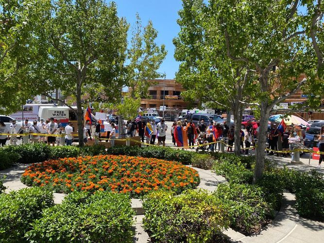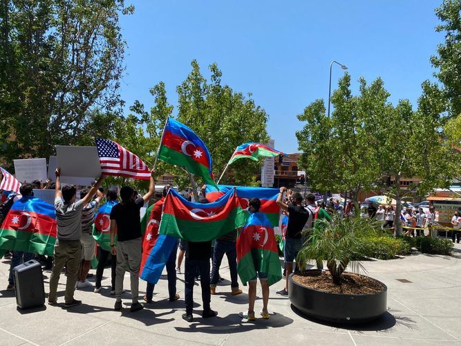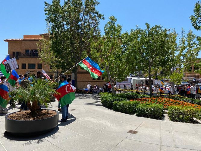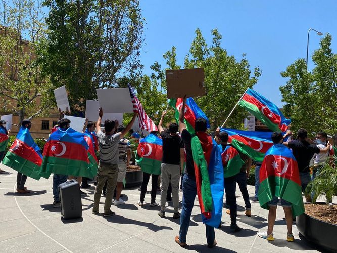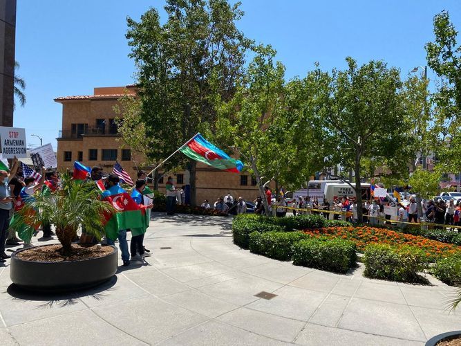 Los Ancelesdəki Baş Konsulluqdan APA-ya verilən xəbərə görə, ancaq onların gözləmədikləri halda, Kaliforniyada yaşayan Azərbaycan icmasının üzvləri yüzlərlə ermənin qarşısına çıxaraq, onların bu təxribatına mane olublar: "Azərbaycanlı icma üzvlərimiz Ermənistanın Azərbaycana qarşı təcavüzü və etnik təmizləmə siyasətini ifşa edən, işğal nəticəsində 1 milyona yaxın dinc azərbaycanlının öz doğma yurdlarından didərgin düşdüyünü əks etdirən ingilis dilində “Qarabağ Azərbaycandır!”, “Ermənistanın təcavüzünə son qoyun!”, “Xocalıya Ədalət”, “Ermənistan COVID-19 pandemiyası dövründə Azərbaycana qarşı müharibəyə başlayır. Ar olsun!” və digər çoxsaylı şüarlar yazılan şəkilli plakatlar nümayiş etdirərək, erməniləri susdurublar.