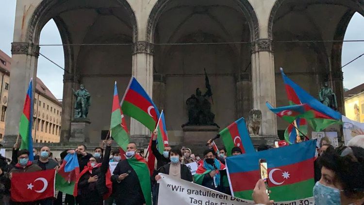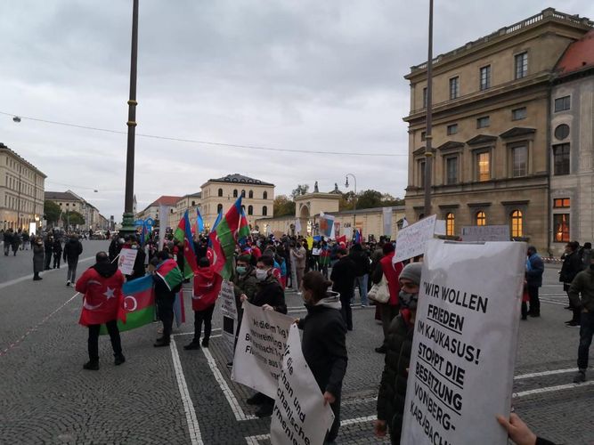 Azərbaycanlılarla yanaşı, türk icmasının nümayəndələri və digərlərinin iştirakı ilə “Marienplatz” meydanından başlayan yürüş “Odeonsplatz” meydanına kimi davam edib. İştirakçılar müxtəlif dillərdə “Qarabağ Azərbaycandır!”, “Gəncə cəbhə zonası deyil!”, “Erməni terrorçuluğuna son qoy!”, “Uşaq ölümünə son qoyun!”, “Biz terrora yox deyirik”, “İşğalçı dövləti dəstəkləməyin!”, “Ermənistan - BMT qətnamələrinə əməl et!” kimi şüarlar səsləndiriblər. Bildirilib ki, dünya birliyi və beynəlxalq təşkilatlar dinc əhaliyə qarşı yönəlmiş bu cür zorakılığı qınamalıdır. Yürüş zamanı Ermənistanın Azərbaycanın mülki əhalisinə qarşı törətdiyi cinayətlər, Gəncə və Mingəçevir şəhərlərində törədilən vandalizm aktları ilə bağlı yerli ictimaiyyət geniş məlumatdırılıb.
