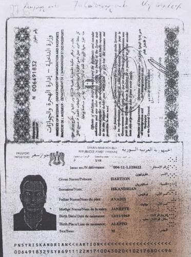əmçinin, 02.05.1964-cü il təvəllüdlü, Suriya vətəndaşı, Suriyanın Haseke bölgəsinin sakini Baazo Hraj Sepob (pasport: 015-11-L021693), 12.11.1969-cu il təvəllüdlü, Suriya vətəndaşı, Suriyanın Hələb şəhərinin sakini İskandarian Hartion Avadis (Pasport: 004-11-L128622) və 01.01.1962-ci ildə Suriyada anadan olmuş, Ermənistan vətəndaşı Kirakos Babkin (pasport: AM 0709227) adına verilmiş pasportların kserosurətləri də aşkarlanıb.