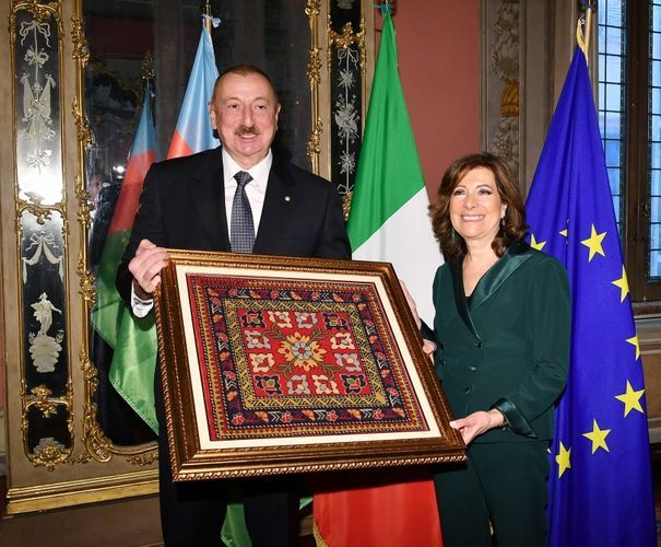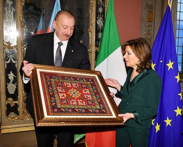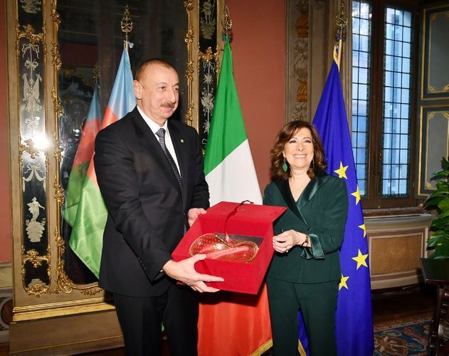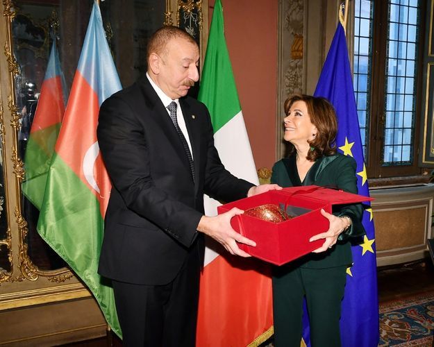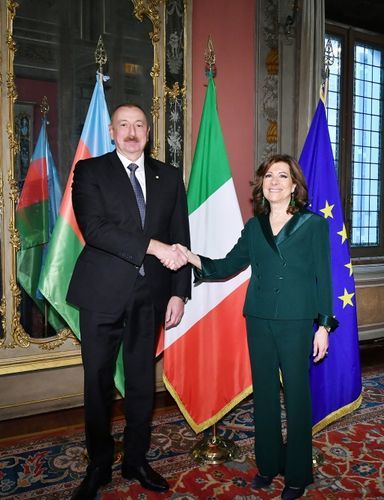 APA-nın xəbərinə görə, Senatın Sədri Maria Elisabetta Alberti Kaselatti dövlətimizin başçısı İlham Əliyevi qarşıladı.