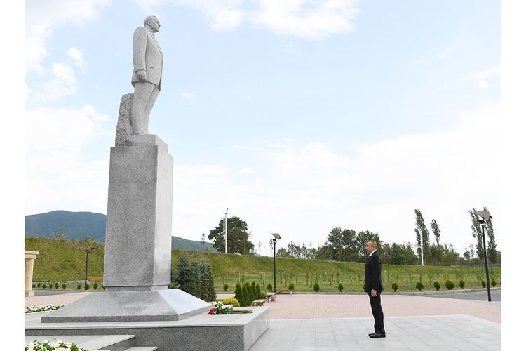 APA xəbər verir ki, dövlətimizin başçısı xalqımızın ümummilli lideri Heydər Əliyevin Şəki şəhərinin mərkəzində ucaldılmış abidəsini ziyarət etdi, önünə gül dəstəsi qoyub.