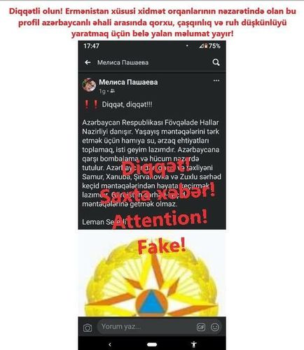 Ordumuz ermənilərin təxribat və hücumlarına cavab olaraq, əks-hücum əməliyyatları həyata keçirir, indiyədək bir sıra ərazilərimiz işğaldan azad edilib. Ciddi itkilər verən, döyüş xəttində uduzan və panikaya düşən ermənilər informasiya məkanında təxribatlara başlayıb.