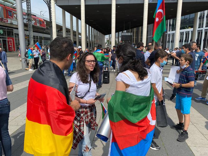 Almaniyanın Köln şəhərində yaşayan azərbaycanlılar Ermənistan Silahlı Qüvvələrinin Azərbaycan-Ermənistan sərhədinin Tovuz rayonu istiqamətində törətdiyi təxribatla əlaqədar etiraz aksiya keçiriblər.