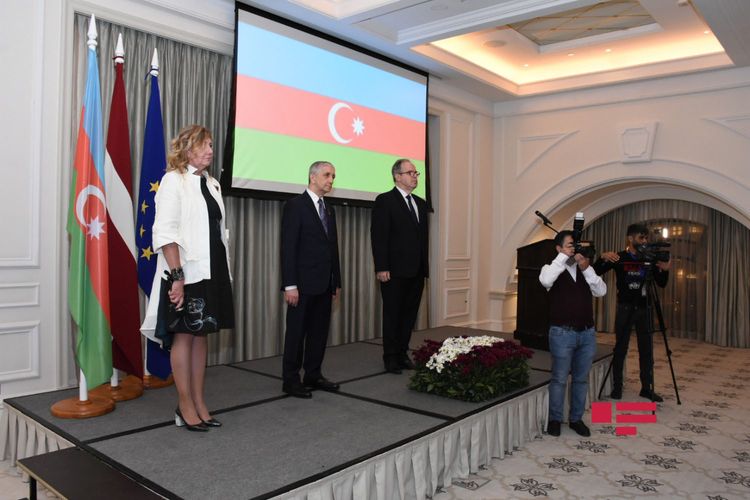 Latviyanın Azərbaycandakı fövqəladə və səlahiyyətli səfiri Danis Qarançs çıxış edərək qonaqları salamlayıb. O bildirib ki, müstəqilliyimizin bərpasından bəri Latviya ilə Azərbaycan arasında konstruktiv münasibətlər qurulub: "Ölkələrimiz arasında yüksək səviyyəli siyasi dialoq və parlamentlərarası əməkdaşlıq mövcuddur. Azərbaycan Cənubi Qafqaz regionunda Latviya üçün vacib iqtisadi tərəfdaşdır. Son illər iki ölkə arasındakı ticarət dövriyyəsi artıb. Hər zaman qida məhsullarının üstünlük təşkil etdiyi Latviyadan Azərbaycana ixracatda tikinti və dərman materialları da önəmli yer tutur".