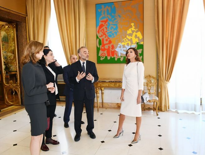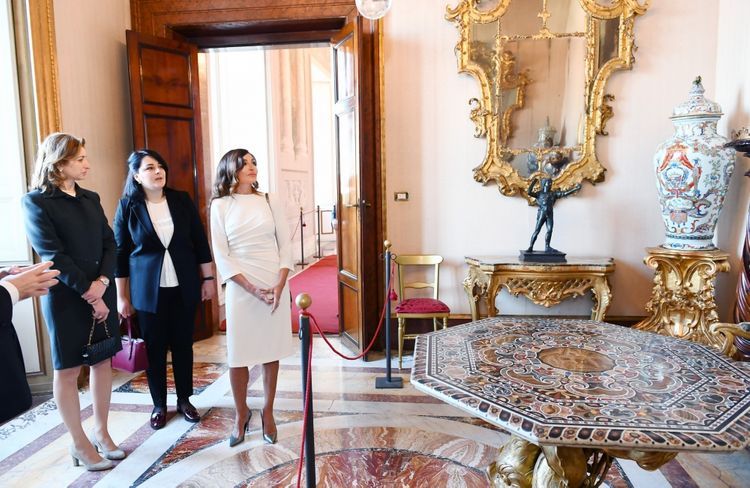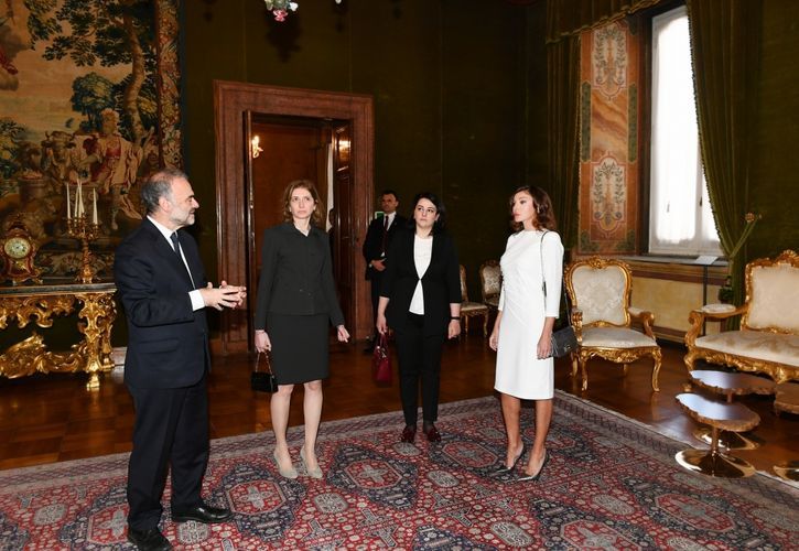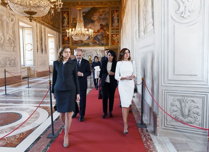 APA-nın xəbərinə görə, Azərbaycanın birinci xanımı Mehriban Əliyeva Kuirinale Sarayının zallarını gəzdi, burada nümayiş olunan eksponatlarla tanış oldu. Mehriban Əliyevaya Kuirinale Sarayının tarixi, burada saxlanılan qiymətli əşyalar, o cümlədən rəsmlər, freskalar, mozaikalar barədə məlumat verildi. Bildirildi ki, Romanın Kuirinale yüksəkliyində yerləşən saray 1573-cü ildə Papa XIII Qriqorinin yay iqamətgahı kimi tikilib. Birinci Umbertonun hakimiyyəti dövründə sarayda müxtəlif şəxslərin, o cümlədən musiqiçilərin, artistlərin, səyyahların qəbulları təşkil olunurdu. İyirmi əsrin birinci yarısında Kral III Viktor Emmanuel bu sarayı iqamətgah kimi seçib.