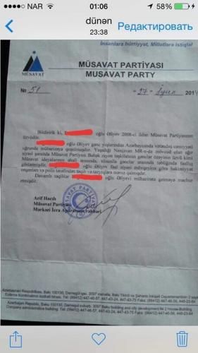 Jurnalist Arif Hacılının imzası, Müsavat Partiyasının möhürü ilə verilən arayış fotosunu paylaşaraq yazıb: “Bu qәdәr hәngamәdәn sonra Gülağa Aslanlı yenә deyir ki, fakt qoyun. Bu qәdәr fakt yetәrli deyilmi? Deyilsә, Arif Hacılının orijinal imzası, Müsavatın halalca möhürü ilә "geydirmә siyasi mühacir"ә verilәn bir arayışı da paylaşıram. Bilirәm ki, bir yol tapıb, boyunlarından atmağa çalışacaqlar. Önәmli deyil, sadәcә mәlumatlanın. İçi saxta vә yalan mәlumatlarla dolu bir arayışdan gedir söhbәt. Bu arayışı Arif Hacılı 2014-cü ildә Avropaya mühacirәtә getmәk istәyәn bir naxçıvanlıya verib. Hәlәlik adının üstündәn xәtt çәkib paylaşıram. Arayışda yazılıb ki, arayış verilәn "qәhrәman" Müsavat Partiyasının Babәk rayon Tәşkilatı Gәnclәr Özәyinin fәal üzvüdür. Birinci yalan Müsavat Partiyası Naxçıvan MR әrazisindәki tәşkilatların heç birindә Gənclər Özəyi olmayıb. Sadәcә arayış belә yazılıb ki, daha tәsirli görsәnsin. Arayışın içәrisindәki “təzyiqə məruz qalıb”, “polis təqibi”, “mühacirәtә getmәyә mәcbur oldu” kimi digәr mәlumatlar da tam yalandı, şәxsin rahat siyasi mühacir status almasına hesablanıb. Bunları nәyә görә әminliklә yazıram? Çünki mәn uzun müddәt Müsavatın Naxçıvan MR tәşkilatında rәhbәr postlarda olmuşam. Naxçıvanda elә bir müsavatçı fәal (yaxud azacıq fәal) yoxdur ki, indi dә tanımayım. Bütün tәzyiqә mәruz qalan müsavatçılar jurnalist olduğuma görә hәr zaman, anında, dәrhal mәnә mәlumat verirdilәr ki, işıqlandırım. Bu 2015-ci ilә kimi belә davam edib. Kimlәrin tәzyiqә mәruz qala bilәcәyini indi dә әzbәr bilirәm. Arayışda yazılana inansaq bu şәxs 2008-ci ildәn partiya üzvüdür. Hәqiqәtәn tәzyiqlә üzlәşәn belә bir fәalı mәnim tanımamam mümkünsüzdü. Qәti әminliklә deyirәm ki, hansısa siyasi fәal olan naxçıvanlı müsavatçı indiyә kimi mühacirәtә gәlmәyib. Kimliyindәn asılı olmayaraq. Әgәr belә bir şәxs olsa mütlәq mәn tanıyardım. Arif Hacılının arayış verdiyi bu şәxsi isә mәn qәtiyyәn tanımıram. Harada, necә, hansı mәqsәdlә müsavatçı edilib, bu arayış yazılıb, özlәri cavab versin”.