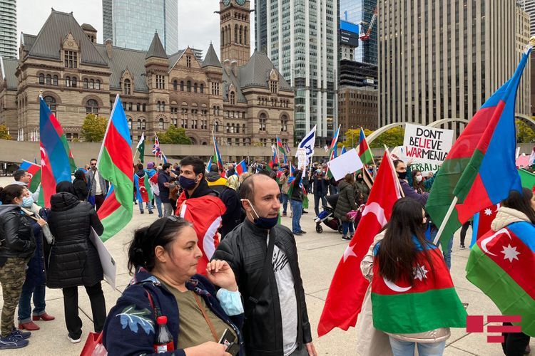 Kanadanın Toronto şəhərində yaşayan azərbaycanlılar 18 oktyabr - Müstəqillik günü münasibəti və Azərbaycan Ordusuna dəstək məqsədi ilə aksiya keçiriblər.