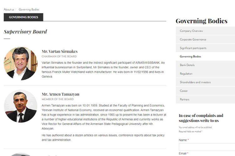 Ermənistan genişmiqyaslı talan əməliyyatına Fransa, Kanada, İsveçrə və digər ölkələrdən imkanlı erməni əsilli və ya erməni diasporu ilə əlaqələri olan iş adamları Azərbaycan ərazisində yataqların istismaına cəlb edilmişdir. Bu cür kriminal biznes nümayəndələrindən biri də İsveçrənin dünyaca məşhur saat brendi “Franck Muller Group”un təsisçilərindən biri və baş direktoru Vartan Sirmakesdir.