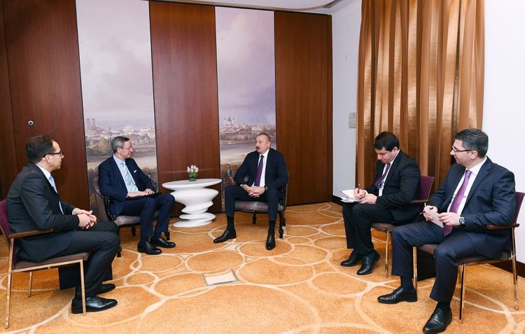 APA xəbər verir ki, bu gün Prezident İlham Əliyev Münxen Təhlükəsizlik Konfransı çərçivəsində Almaniyanın Şərqi Biznes Assosiasiyasının baş icraçı direktoru Mixael Harms və assosiasiyanın Cənubi Qafqaz ölkələri üzrə işçi qrupunun rəhbəri, “Veridos GmbH” şirkətinin baş icraçı katibi Andreas Reşmayer ilə görüşüb.