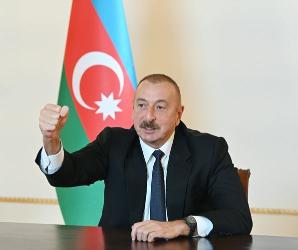 Bir məsələyə də toxunmaq istəyirəm. Azərbaycan xalqı da bunu vasitəçilərdən, bəzi beynəlxalq təşkilatlın rəhbərlərindən dəfələrlə eşidib ki, bu münaqişənin hərbi həlli yoxdur. Mən isə demişdim ki, bu tezislə razı deyiləm və mən haqlı çıxdım, mən! Otuz ilə yaxındır danışıqlar aparılır. Bir məsələ yerindən tərpəndi? Bir santimetr torpaq bizə danışıqlar yolu ilə verildi? Təcavüzkarı məcbur etdilərmi ki, bizim torpağımızdan çıxsın, BMT Təhlükəsizik Şurasının qətnamələrini yerinə yetirsin? Yox. Bəs, bu məsələ indi necə həll olunur? Bu, hərbi yol deyilmi? Məhz hərbi yolla bu məsələ həll olunur. Hərbi, ondan sonra siyasi. Bu əməliyyat olmasaydı, biz təcavüzkara lazımi zərbələr endirməsəydik, onların dərsini verməsəydik, indi o qaçardımı Moskvaya danışıqlar aparmaq üçün?! Oturacaqdı özündən razı, deyəcəkdi ki, torpaqları vermirik. Biz məcbur etdik onları. Biz onları elə günə saldıq ki, indi gizlənməyə deşik axtarırlar, tapa bilmirlər. Oturublar, siçan kimi ağzına su alıb susurlar. Bəs, hanı sənin hikkən?! Hanı sənin təkəbbürün?! Hanı sənin “qəhrəmanlığın”?! Deyirdin “Qarabağ Ermənistandır”. Qarabağ Azərbaycandır. Bunu hamı bilməlidir, o cümlədən bu gün Ermənistanın başında oturanlar da bilməlidir. Mən onlara bir daha deyirəm, əgər Moskva danışıqlarından sonra yenə də saxtakarlıq edəcəklərsə, özləri peşman olacaqlar. Biz torpaqlarımızı geri alacağıq - sülh yolu ilə, ya da ki, müharibə yolu ilə. Birmənalı! Biz istəyirik ki, sülh yolu ilə bunu təşkil edək, sülh yolu ilə bunu alaq. Ermənistana axırıncı şans veririk, axırıncı şans! Heç kimə ümid bağlamasın. Heç kim onlara kömək etməyəcək. Bizim qabağımızda Ermənistan acizdir. Bizim qabağımızda Ermənistan diz çöküb. Bizim şəhidlərimizin ruhu qarşısında biz onları diz çökdürmüşük. Şəhidlərimizin qanı yerdə qalmayıb. Mən dəfələrlə şəhid ailələrinin nümayəndələri ilə, şəhid valideynləri ilə görüşlərdə demişdim ki, biz onların qisasını alacağıq. Bizim şəhidlərimizin qanı yerdə qalmayacaq və qalmır. Biz qan istəmirik. Biz istəyirik torpaqlarımız bizə verilsin. Verilsin, uzatmasınlar məsələni. Stasu-kvo deyilən məsələ yoxdur, qurtardı getdi. Status-kvo belə olmalıdır, elə olmalıdır. Mən dəyişdirdim status–kvonu, dəyişdirdim! Bax, orada, döyüş meydanında. Yoxdur status-kvo. Təmas xətti, yoxdur təmas xətti. Yarmışıq onu. Onlar 30 il idi ki, qururdular bu təmas xəttini. Özü də o bölgənin relyefi təbii istehkamdır. Biz aşağıdan yuxarı gedirik. Özü də 30 il ərzində orada beton istehkamlar qurulub. Yarıb keçmişik. Azərbaycan əsgərinin qabağında heç kim heç nə edə bilməz. Biz bu gün o təmas xəttini darmadağın etdik. Yoxdur təmas xətti. İndi deyirlər yeni təmas xətti olacaq. Olmayacaq! Biz torpaqlarımızı geri alacağıq. Hansı təmas xəttindən söhbət gedə bilər?! Yoxdur bu, biz dağıtmışıq, biz etmişik, iradə göstərmişik, güc göstərmişik, xalqımızın iradəsinə arxalanmışıq və bu gün qələbə çalırıq. Tarixi qələbə çalırıq! Bu qələbə Azərbaycan xalqının əldə etdiyi qələbələr arasında ən parlaq qələbədir. Gələcəkdə bu qələbələr davam edəcək. Biz torpaqlarımızı azad edəcəyik, ərazi bütövlüyümüzü bərpa edəcəyik! Düşməni ondan sonra da qovacağıq. Mən bilirəm ki, Azərbaycan xalqı mənim bu sözlərimi bəyənibdir. Qovacağıq onları axıra qədər. Bayrağımız işğal edilmiş bütün torpaqlarda qaldırılacaq, Azərbaycanın ərazi bütövlüyünü bərpa ediləcək. Yaşasın Azərbaycan Ordusu! Qarabağ Azərbaycandır!