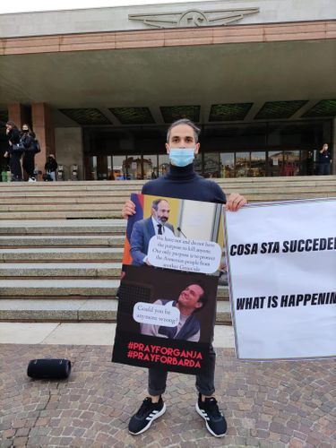 Diasporla İş üzrə Dövlət Komitəsindən Lent.az-a verilən xəbərə görə, Azərbaycan İtaliya Gənclər Assosiasiyasının təşkilatçılığı ilə baş tutan aksiyada həmvətənlərimiz əllərində Ermənistanın işğalçı siyasətini, Gəncə və Bərdə şəhərlərində ermənilərin törətdiyi terror aktlarını əks etdirən məlumat xarakterli lövhələr tutublar. Aksiya iştirakçılarına yaxınlaşan çoxsaylı şəhər sakinlərinə və turistlərə işğalçı Ermənistan ordusunun terror aktları və mülki insanlara qarşı istifadəsi qadağan olunan kasetli raketlər ilə Azərbaycanın dinc sakinlərinin hədəfə alınması barədə məlumat verilib.
