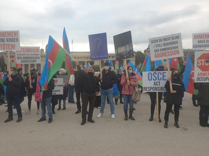 Avstriyanın Vyana şəhərindəki Azərbaycan diasporu işğalçı Ermənistan ordusunun Azərbaycana qarşı təcavüzünə, Azərbaycan ərazisindəki növbəti hərbi təxribatlarına etiraz olaraq Vyananın Helden Platz meydanında icazəli aksiya keçirib. Aksiya iştirakçıları Ermənistan silahlı qüvvələrinin Gəncə şəhərini və digər yaşayış məntəqələrini yenidən raket atəşinə tutması nəticəsində mülki vətəndaşların, o cümlədən azyaşlı uşaqların və qadınların həlak olmasının, mülki obyektlərin dağıdılmasının vandalizm aktı olduğunu bildiriblər və dünya ictimaiyyətini Azərbaycana qarşı qərəzli mövqe tutmamağa, erməni terroruna göz yummamağa çağırıblar.