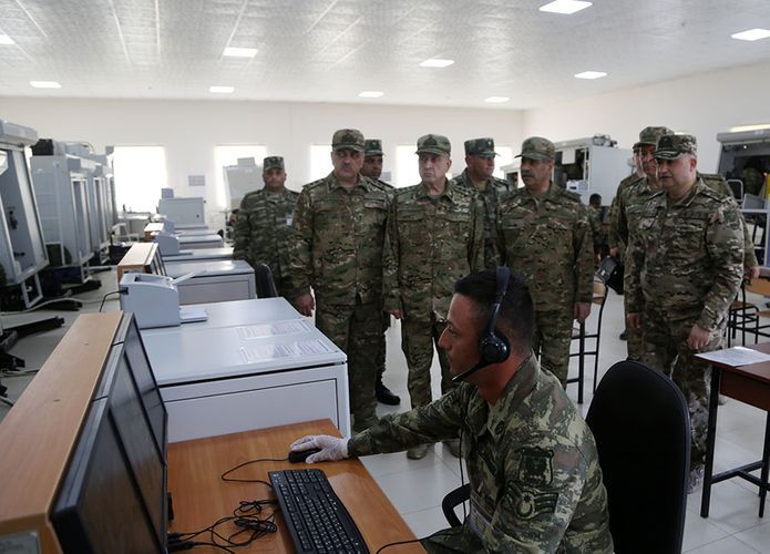 Hərbi hissələrin birinin ərazisində inşa olunan trenajor binasına gələn general-polkovnik M.Əliyev və general-polkovnik Z.Həsənov ekipajların tank və piyada döyüş maşınlarının təlim-məşq qurğularında atış və sürücülük məşqlərini izləyiblər.
