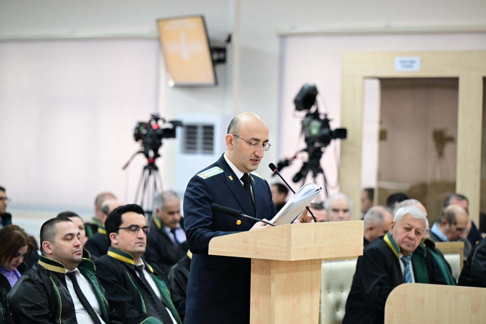Məhkəmə prosesi dövlət ittihamını müdafiə edən prokurorlar tərəfindən cinayət işi üzrə ittiham aktının nəticəvi hissəsinin elanı ilə davam etdirilib.