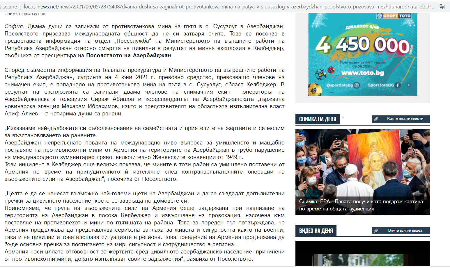 Bolqarıstan mətbuatında da Kəlbəcər rayonunda minanın partlaması nəticəsində 3 nəfərin həlak olması ilə bağlı məlumatlar dərc edilib
