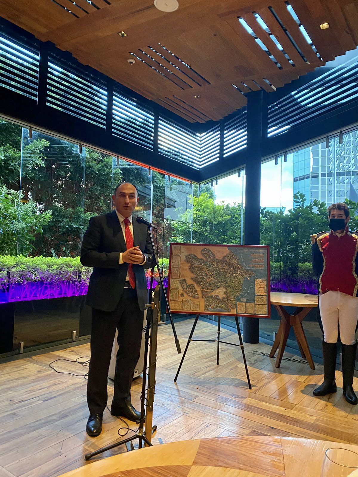 Tədbirdə çıxış edən səfir M.Talıbov Azərbaycanla Meksika arasındakı əlaqələrin önəmindən bəhs edib, ölkəmizin mədəniyyəti, ənənələri, turizm potensialı və milli mətbəxi barədə məlumat verib. Həmçinin Meksika milli mətbəxinin nümunəsi “Chile en nogada” ilə bənzərliyi olan dolmanın Azərbaycanda bir neçə növü olduğunu qeyd edib.