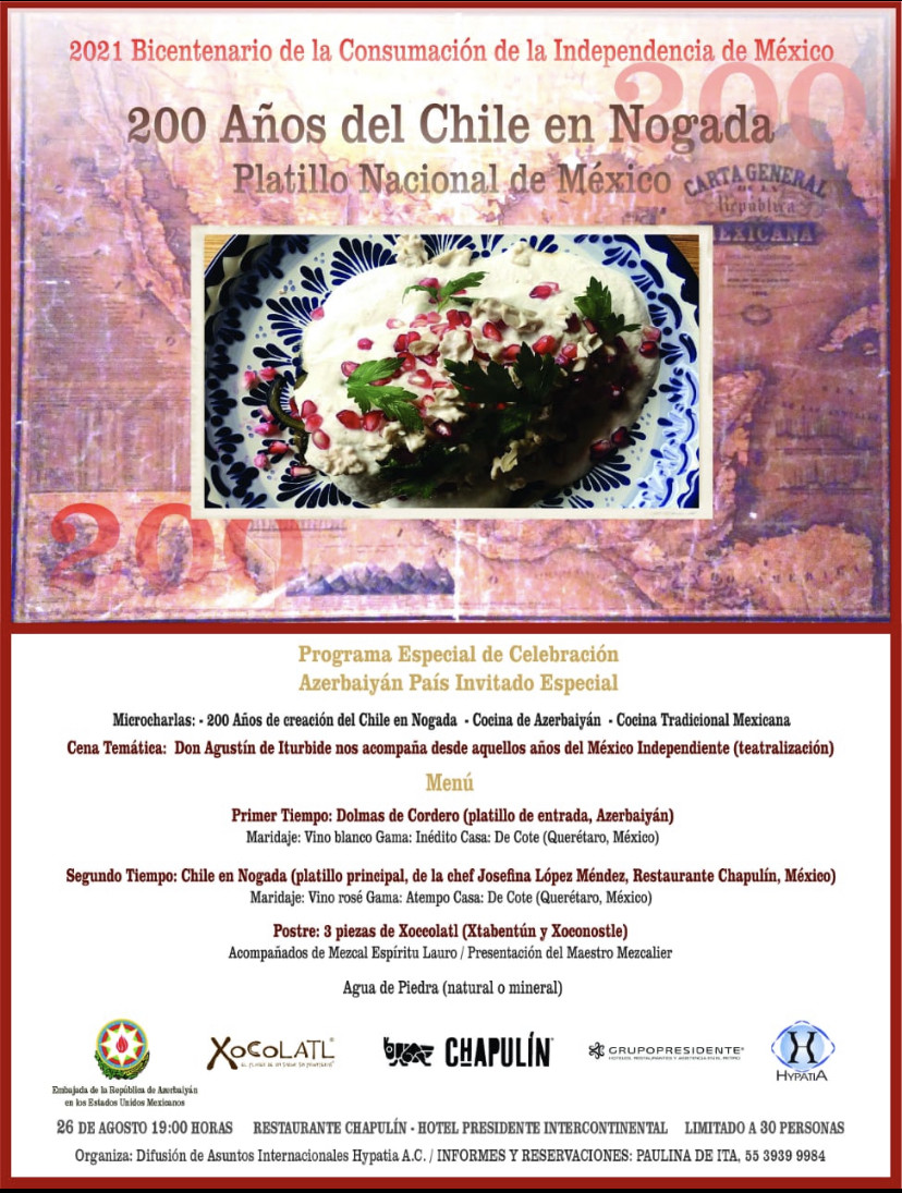 Azərbaycanın Meksikadakı Səfirliyindən Lent.az-a verilən məlumata görə, tədbirdə Meksikanın müstəqilliyini simvolizə edən, YUNESKO-nun qeyri-maddi mədəni irs siyahısına daxil edilmiş “Chile en nogada” yeməyi ilə yanaşı, tədbirdə xüsusi qonaq qismində iştirak edən Azərbaycanın milli mətbəx nümunəsi olan yarpaq dolması “Chapulin” restoranının baş aşpazı tərəfindən hazırlanaraq qonaqlara təqdim olunub.