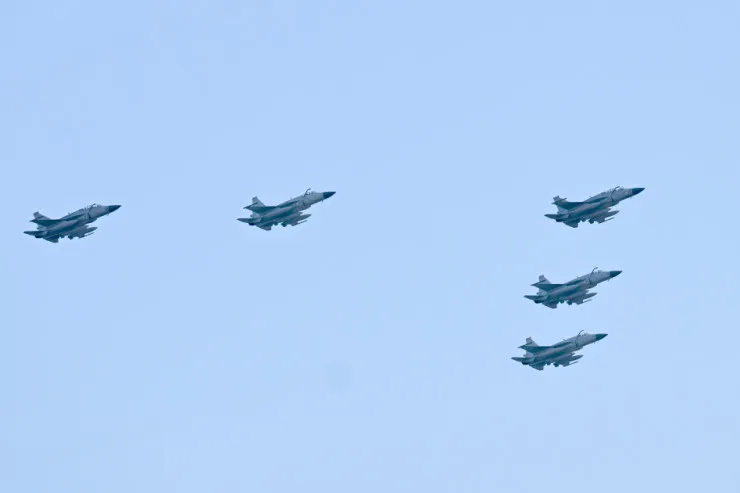 Azərbaycan və Türkiyə pilotlarının iştirakı ilə aviasiya nümayiş uçuşları isə izləyicilər üçün unudulmaz olub. Parad çərçivəsində uçan Mİ-17 döyüş-nəqliyyat helikopterləri Azərbaycan, Türkiyə və Pakistan respublikalarının Dövlət bayraqlarını daşıyıb, Mİ-17 helikopteri Ümummilli Lider Heydər Əliyevin portretini nümayiş etdirib. Həmçinin uzaqmənzilli hava-yer tipli raketlərlə təchiz olunmuş Mİ-17 döyüş-nəqliyyat helikopterləri, MFİ-17 təlim təyyarələri, L-39 təlim təyyarələri, İL-76 hərbi-nəqliyyat və silahlanmaya yeni qəbul edilmiş C-27J yük təyyarələri, silahlanmaya yeni qəbul edilmiş JF-17 (Cİ EF) çoxməqsədli qırıcı təyyarələr, Türkiyə Hərbi Hava Qüvvələrini təmsil edən F-16 çoxməqsədli qırıcı təyyarələr, modernizasiya olunmuş SU-25-Laçın hücum təyyarələri iftixar dolu hisslər yaşadıb. SU-25 hücum təyyarələri isə Azərbaycan Bayrağının rənglərini paytaxt səmasında canlandırıb.