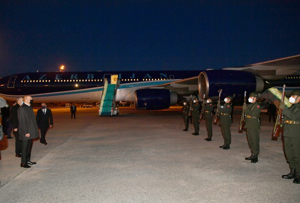 Lent.az xəbər verir ki, Azərbaycanın və Türkiyənin dövlət bayraqlarının dalğalandığı Atatürk hava limanında dövlətimizin başçısının şərəfinə fəxri qarovul dəstəsi düzülüb.