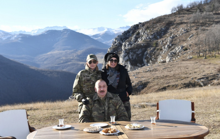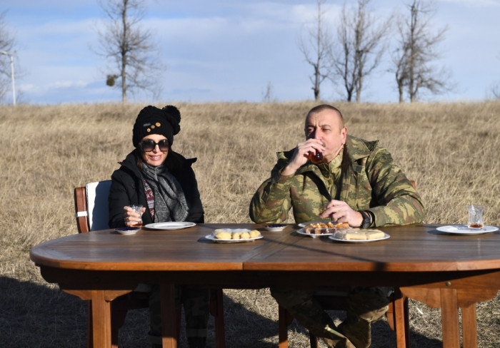 Prezident İlham Əliyev, birinci xanım Mehriban Əliyeva və qızları Leyla Əliyeva Cıdır düzündə çay süfrəsinə qonaq olublar.