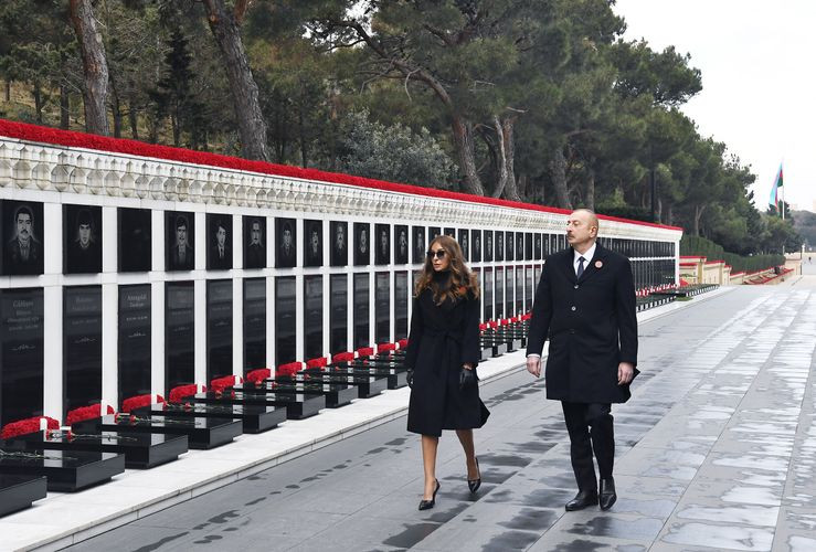 APA-nın məlumatına görə, dövlət başçısı İlham Əliyev və birinci xanım Mehriban Əliyeva ölkəmizin azadlığı uğrunda həlak olanların xatirəsini yad ediblər.