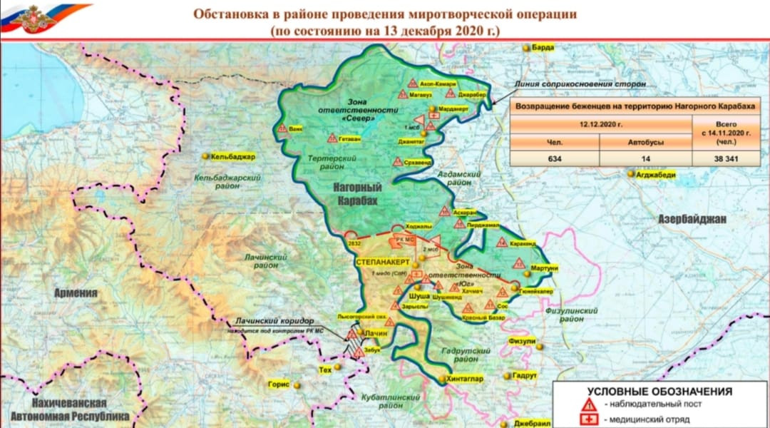Rusiya Müdafiə Nazirliyi Dağlıq Qarabağda sülhməramlı qüvvələrin nəzarətində olan ərazilərin əks olunduğu xəritəyə yenidən baxıb.