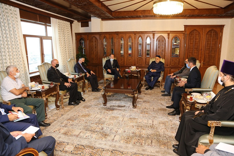 İşğaldan azad olunan Ağdam və Şuşa şəhərlərinə Azərbaycandakı müxtəlif konfessiyaların rəhbərləri ilə birgə səfəri barədə qonağa məlumat verən QMİ sədri bildirib ki, hər iki şəhərdə məscidlərdə, kilsə və məbədlərdə uzun illərdən sonra dini ayinlər icra olunub, regionda və dünyada sülhün, sabitliyin davamlı olması üçün birgə dualar edilib. Ölkə Prezidenti İlham Əliyevin gündəlik diqqət və qayğısı ilə azad olunan ərazilərdə böyük həcmli quruluculuq işlərinə başlandığını diqqətə çatdıran Allahşükür Paşazadə Azərbaycanın hər zaman sülhsevər dövlət olduğunu, dostluq və əməkdaşlığa xüsusi önəm verdiyini, lakin ərazi bütövlüyünə hər hansı bir təhdid yaranacağı təqdirdə öz hərbi qüdrətini göstərməyə, düşmənə “Dəmir yumruq”la cavab verməyə hazır olduğunu bildirib.