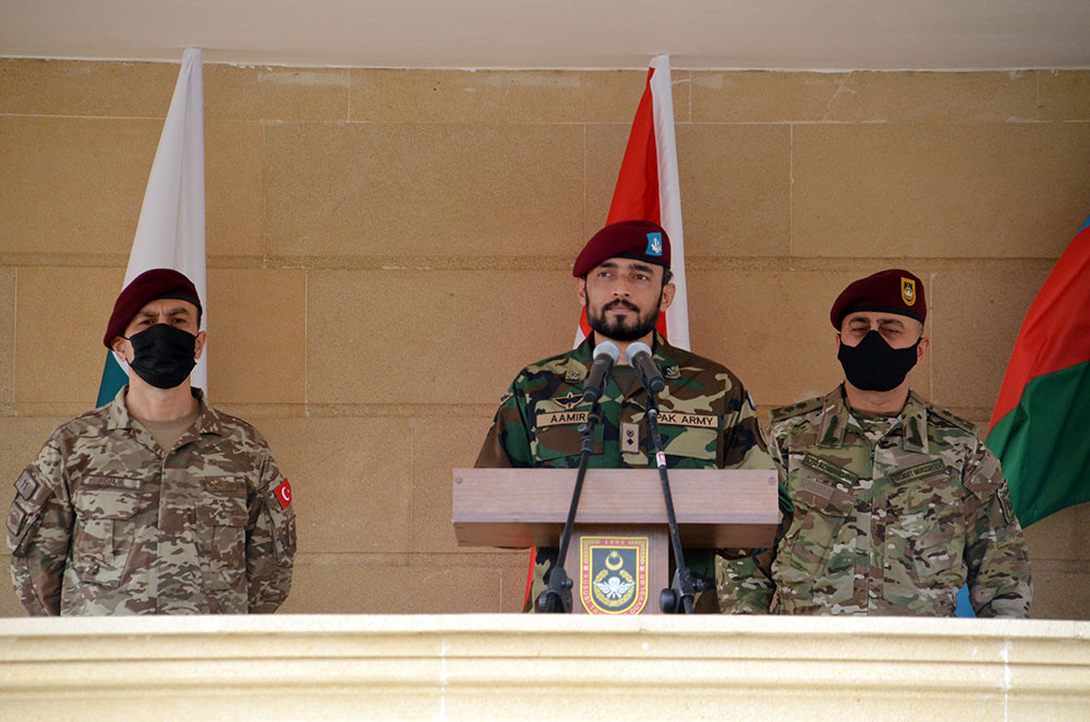 Xüsusi Təyinatlı Qüvvələr komandanı üç dövləti təmsil edən xüsusi təyinatlıları birgə təlimlərin başlaması münasibətilə təbrik etdikdən sonra Azərbaycan, Türkiyə və Pakistanın şəhidlərinin xatirəsini yad etmək ucun bir dəqiqəlik sükut elan olunub.