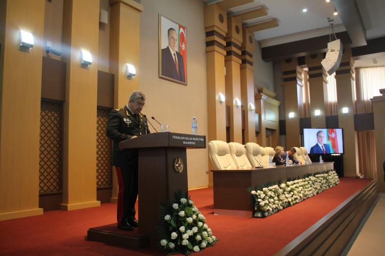 Tədbirdə çıxış edən Fövqəladə Hallar Nazirliyi Akademiyasının rəisi general-mayor Baba Salayev Ulu Öndərin Azərbaycan dövləti və xalqı qarşısındakı əvəzsiz xidmətlərindən danışaraq bildirib ki, xalqımızın böyük oğlu Heydər Əliyevin fəaliyyət dövrü Azərbaycan tarixinin qızıl səhifələridir. Onun əməlləri, bütün fəaliyyəti bir istiqamətə yönəlib: Azərbaycana xidmət etmək. Akademiyanın rəisi qeyd edib ki, Ümummilli Lider adını xalqa xidmət yolunda gördüyü əvəzsiz işlərlə Azərbaycan tarixinə ən böyük azərbaycanlı kimi həkk etdirib.