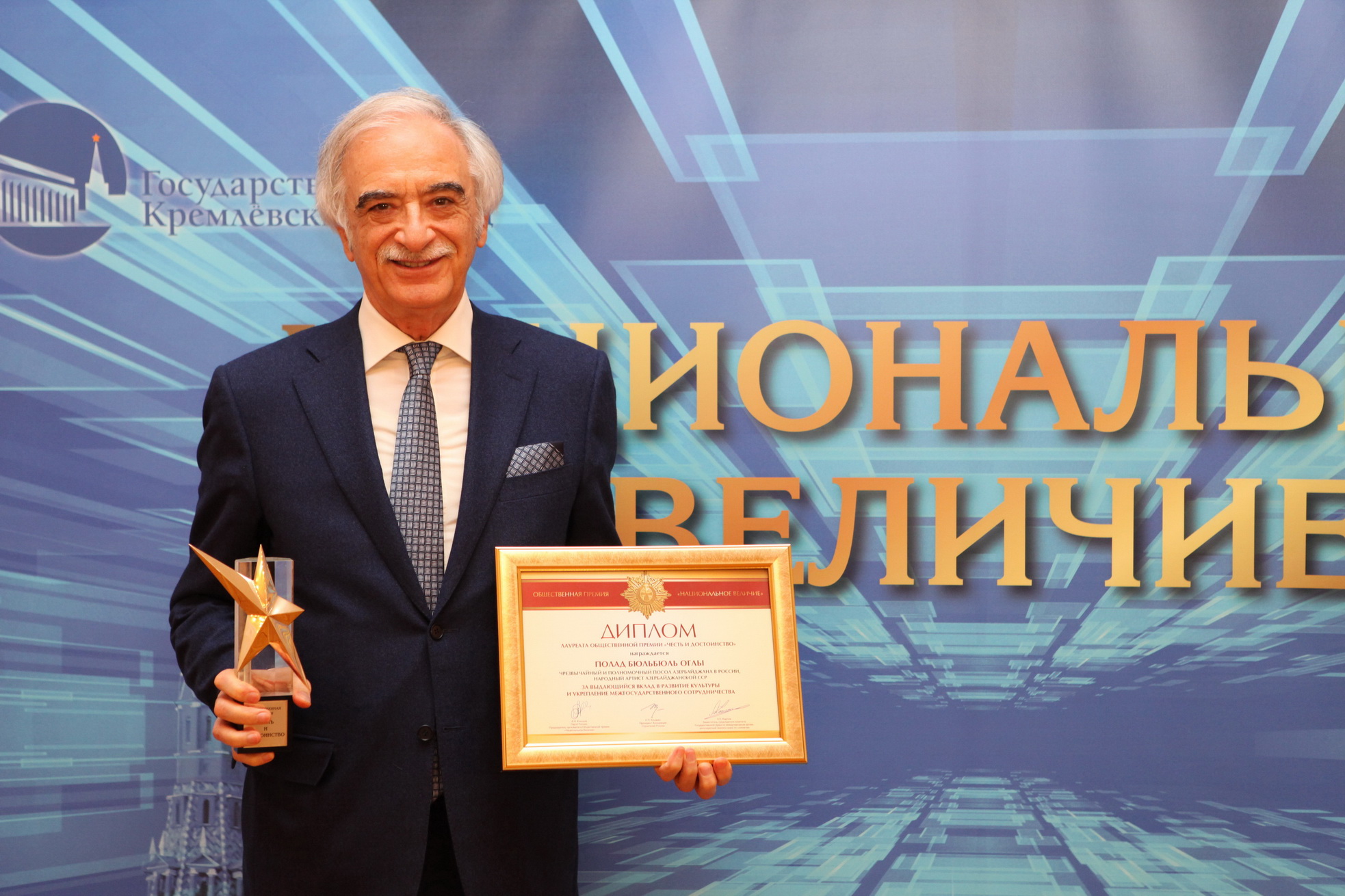 Azərbaycanın Rusiyadakı səfiri, xalq artisti, məşhur bəstəkar və müəğənni Polad Bülbüloğlu Rusiyanın “Milli əzəmət” ictimai mükafatının “Şərəf və ləyaqət” nominasiyası üzrə laureatı adına layiq görülüb.