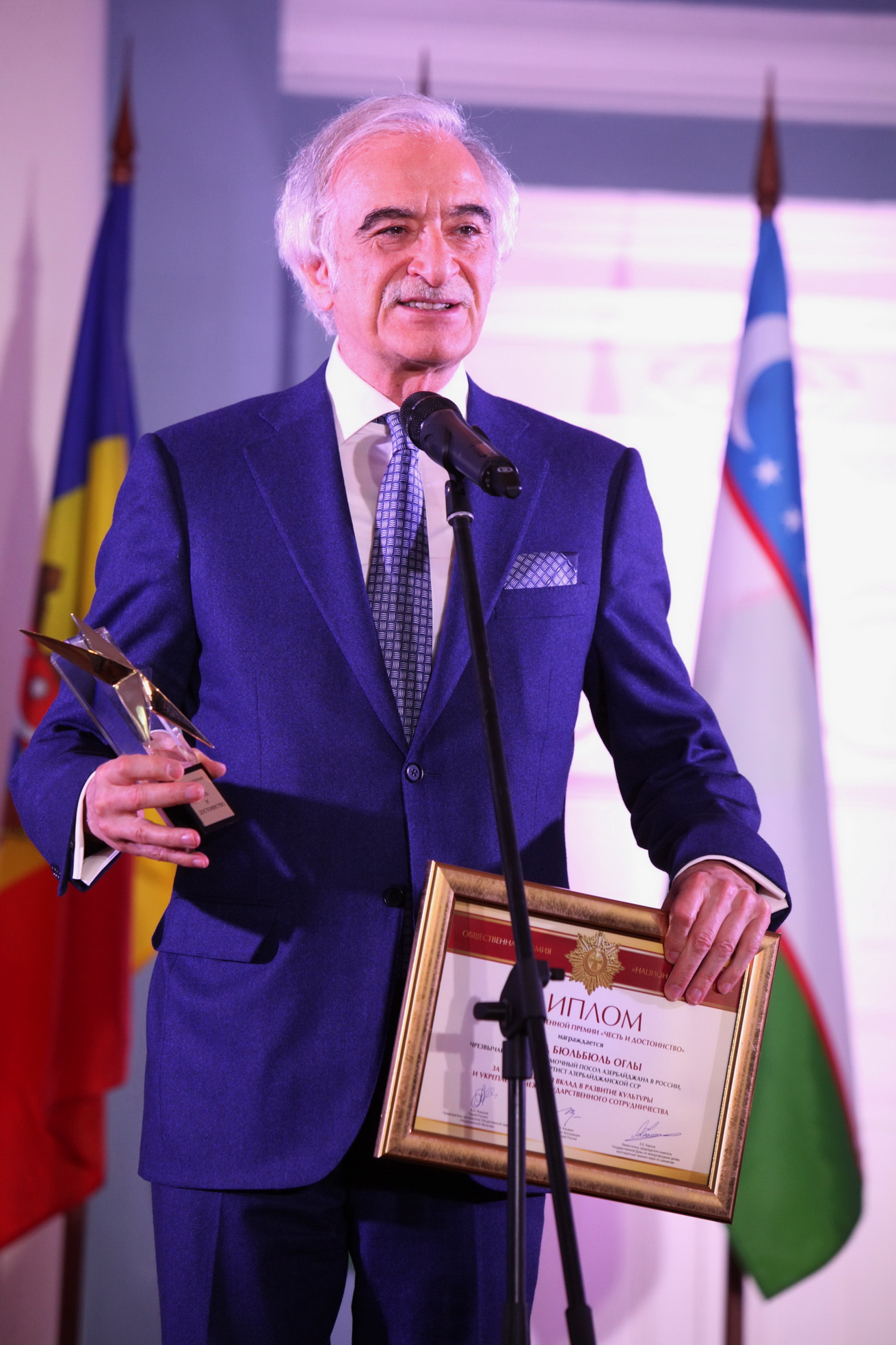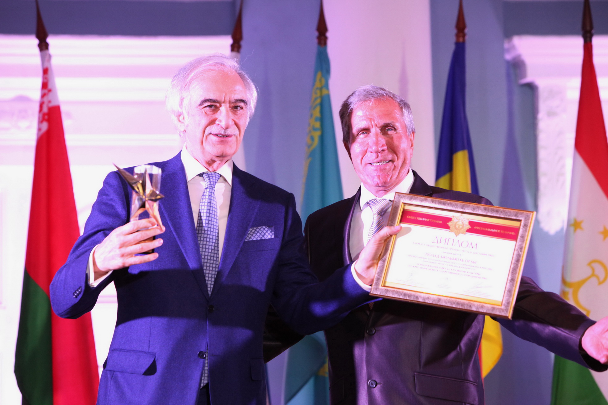 Qeyd edək ki, “Milli əzəmət” ictimai mükafatı 2005-ci ildə təsis edilib. Müxtəlif illərdə bu mükata qrossmeyster Anatoli Karpov, bəstəkar Aleksandra Paxmutova, rejissor Eldar Ryazanov və başqaları layiq görülüblər. Bu il mükafat alanlar arasında SSRİ Xalq Artisti Vasili Lanovoy, Özbəkistanın Xalq Artisti, “Yalla” ansanblının rəhbəri Fərrux Zakirov və başqaları da olub.