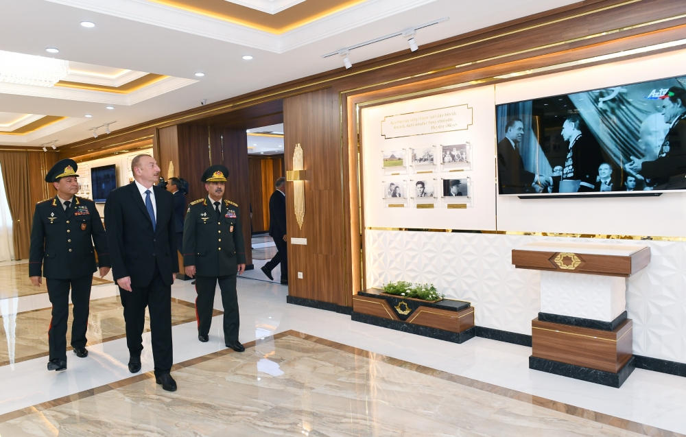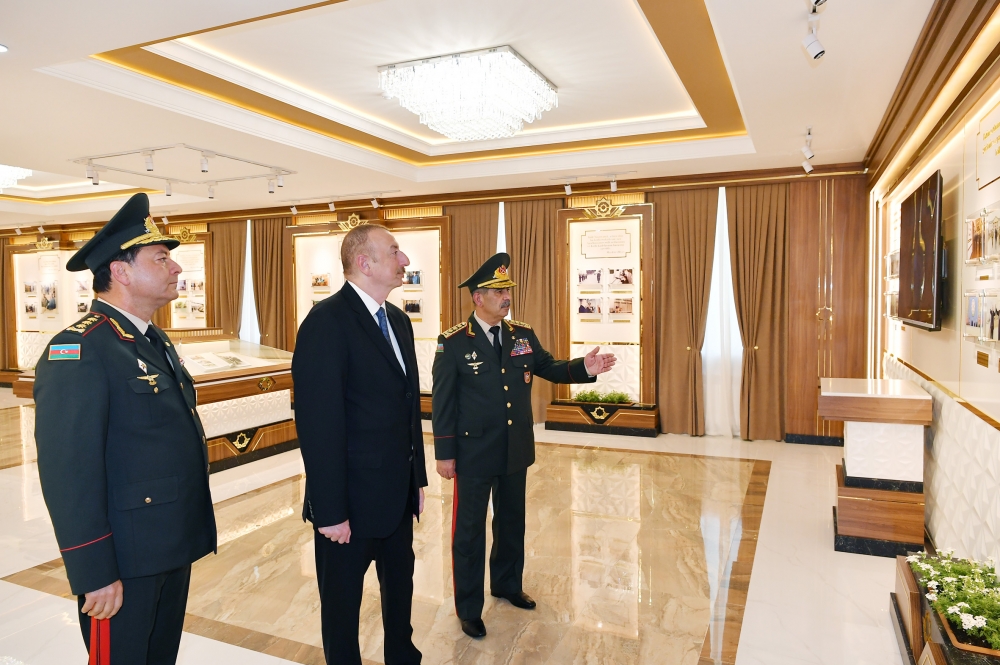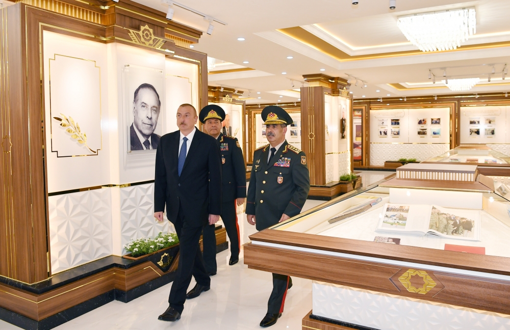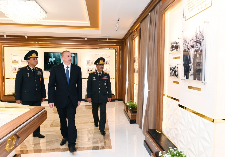 Sonra dövlət başçısı Hərbi Liseydəki Heydər Əliyev Muzeyi ilə tanış oldu. Hələ sovet dövründə gələcəkdə müstəqil Azərbaycanın milli zabit kadrlarının yetişdirilməsi zərurətini uzaqgörənliklə diqqətə alan ulu öndər Heydər Əliyevin təşəbbüsü ilə 1971-ci ildə Bakıda Cəmşid Naxçıvanski adına Hərbi Lisey yaradılıb. Ölkəmizə rəhbərliyinin bütün dövrlərində bu hərbi təhsil ocağına ən yüksək səviyyədə diqqət və qayğı göstərən ümummilli lider Heydər Əliyevin 1998-ci və 2002-ci illərdə imzaladığı sərəncamlarla Hərbi Liseyin yaradılmasının 25 və 30 illik yubileyləri dövlət səviyyəsində geniş qeyd edilib. Muzeydə ulu öndər Heydər Əliyevin və Prezident, Ali Baş Komandan İlham Əliyevin Azərbaycanda nizami ordu quruculuğu, Silahlı Qüvvələrimizin hərbi qüdrətinin artırılması, o cümlədən Hərbi Liseyin inkişafına göstərdikləri yüksək diqqət və qayğını əks etdirən fotolar, sənədlər və nəşrlər nümayiş olunur.