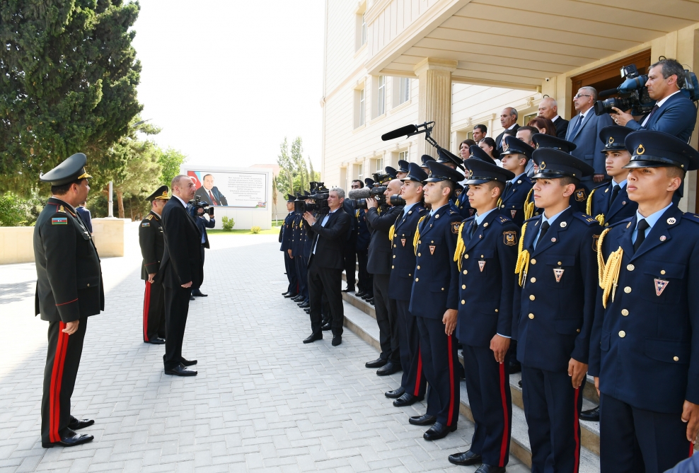 “Silahlı Qüvvələr Günü münasibətilə Sizi təbrik edir, hər birinizə uğurlar arzulayıram. Arzu edirəm ki, siz gözəl hərbçi kimi özünüzü göstərəsiniz. Bilirsiniz ki, bu məktəbin təməlini ulu öndər Heydər Əliyev qoymuşdur. Onun təşəbbüsü ilə bu məktəb 1971-ci ildə yaradılmışdır. Ulu Öndər həmişə bu məktəbin fəaliyyətinə böyük diqqət göstərmişdir. Hələ o vaxt bilirdi ki, bizə milli hərbçi kadrlar lazım olacaq və belə də oldu.