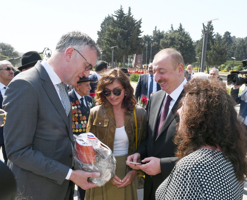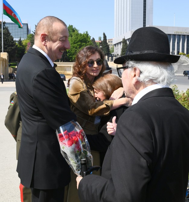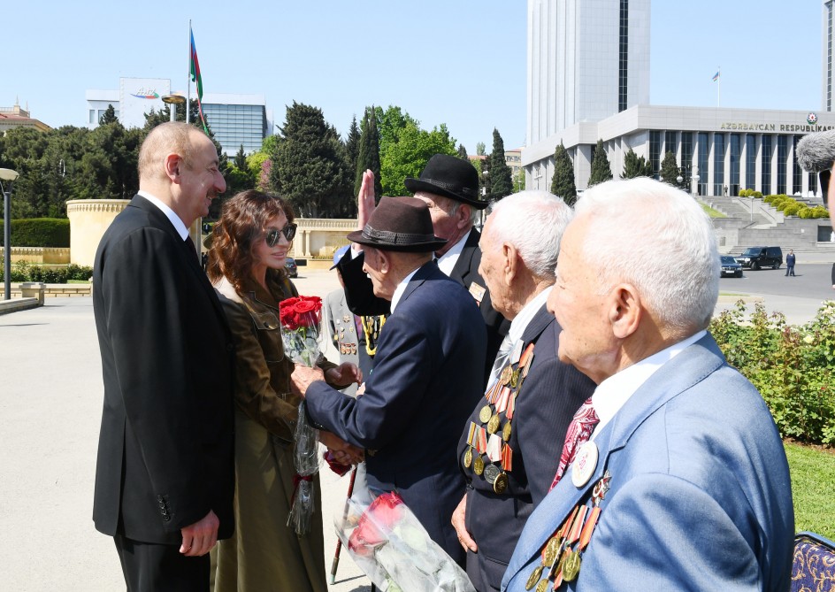 Sonra dövlət başçısı və xanımı iki dəfə Sovet İttifaqı Qəhrəmanı Həzi Aslanovun ailə üzvləri, yaxın qohumları ilə görüşüblər, Qələbə günü münasibətilə onları təbrik ediblər.