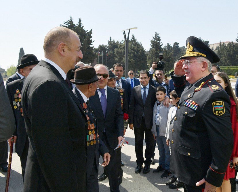 Azərbaycan Prezidenti İlham Əliyev 9 May - Qələbə Günü münasibətilə iki dəfə Sovet İttifaqı Qəhrəmanı, general-mayor Həzi Aslanovun abidəsini ziyarət edib.