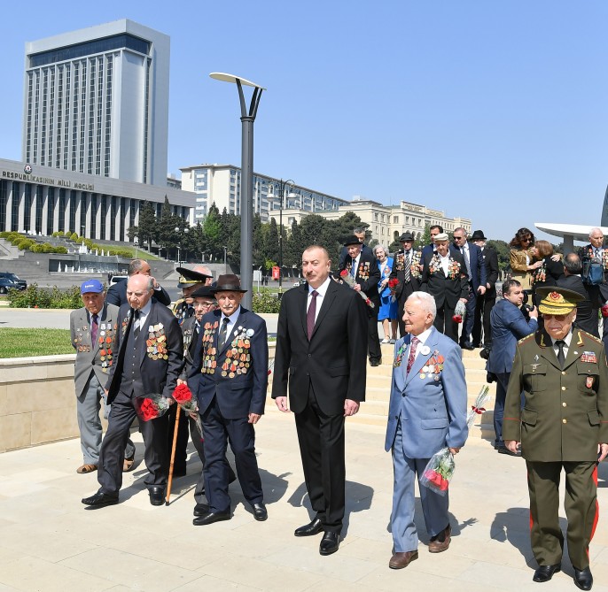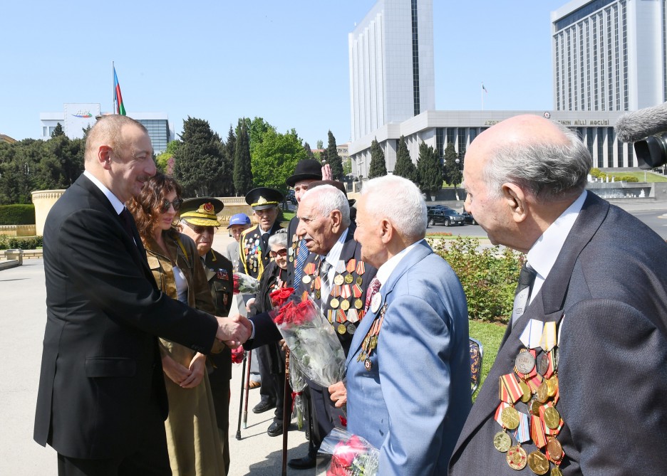 Prezident İlham Əliyev və birinci xanım Mehriban Əliyeva Böyük Vətən müharibəsi veteranları ilə xatirə şəkli çəkdiriblər.