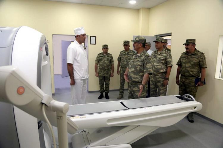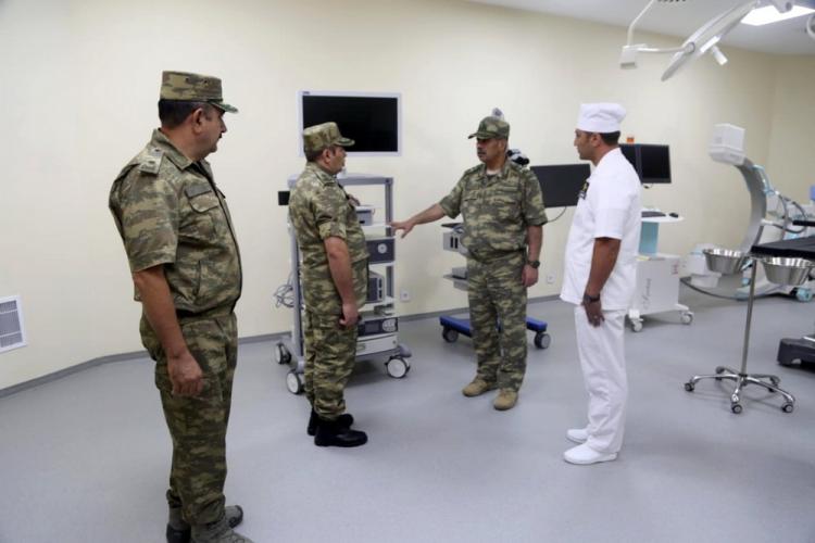 Müdafiə naziri yeni istifadəyə verilən hərbi hospitalda yaradılan şəraitlə tanış olduqdan sonra tibbi personalla görüşüb, onları müqəddəs Qurban bayramı münasibətilə təbrik edib, tibbi xidmətin təşkili ilə bağlı müvafiq tapşırıqlar verib.