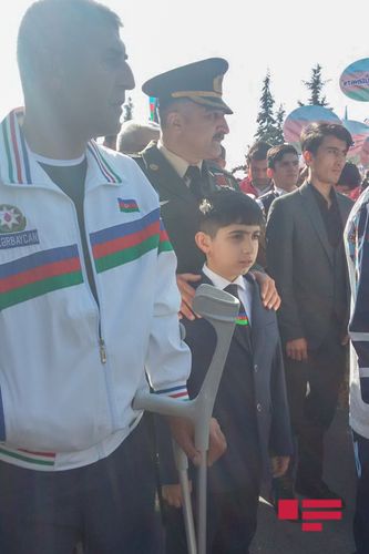 Çoxsaylı insanların arasında əli əsalı, eyni geyimli 10-15 nəfərlik dəstə dayanıb.  Qarabağ döyüşlərində ayaqlarını itirən insanlardır. Neçə kilometrlik yolu əsanın yardımı ilə yürüyən bu insanlar birlikdə bir fütbol komandası da yaradıb. “Qarabağ qaziləri” amputant futbol komandasının üzvü Anar Ağakişiyevin təəssüratını öyrənirəm: “İlk döyüş yolum Ağdamdan keçib. Füzuli, Cəbrayıl rayonlarında döyüşlərdə iştirak etmişəm, minaya düşüb yaralanmışam.