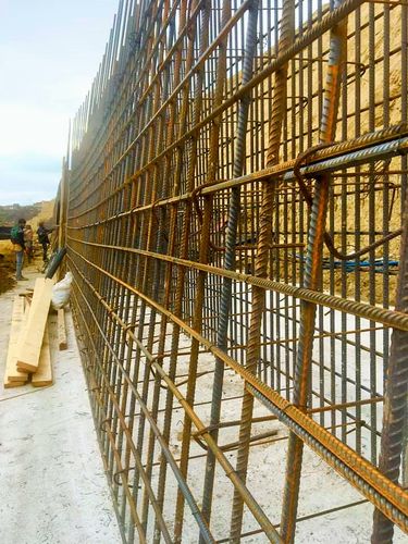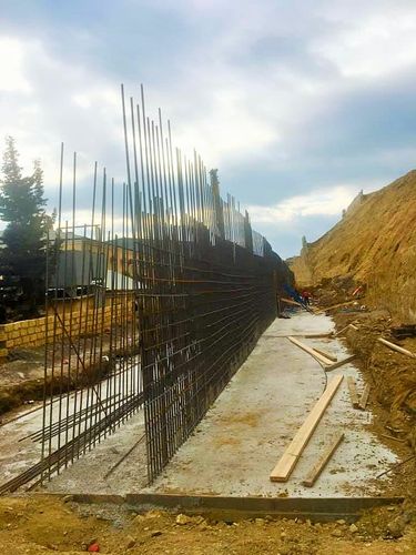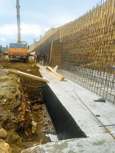 Yoldan aşağı hissədə 2 yerdə svay əsaslı istinad divarının inşası nəzərdə tutulub ki, onlardan birinin yamacın aşağı hissəsində tikintisi yekunlaşmaq üzrədir. Bunun üçün ərazidə hazırda svay vurma işləri aparılıb. Svaylar 1 metr diametrində olmaqla 2 cərgə vurulub və üzərində 1.5 metr qalınləqda monolit dəmir-beton tava inşa edilib. Hazırda ərazidə 8 metr hündürlükdə istinad divarı inşa edilir.